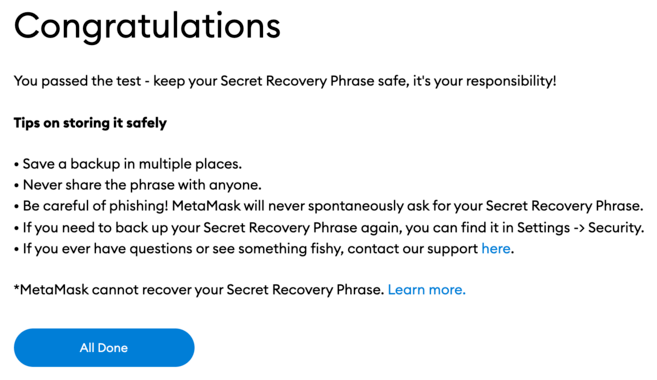 9. Your MetaMask wallet is now ready to use. Click [All Done] to go to your wallet.