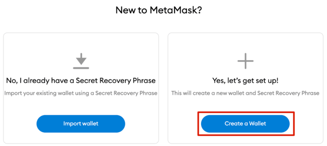 3. Click [Create a Wallet] to create your MetaMask wallet, or click [Import wallet] to import an old wallet using your seed phrase.
